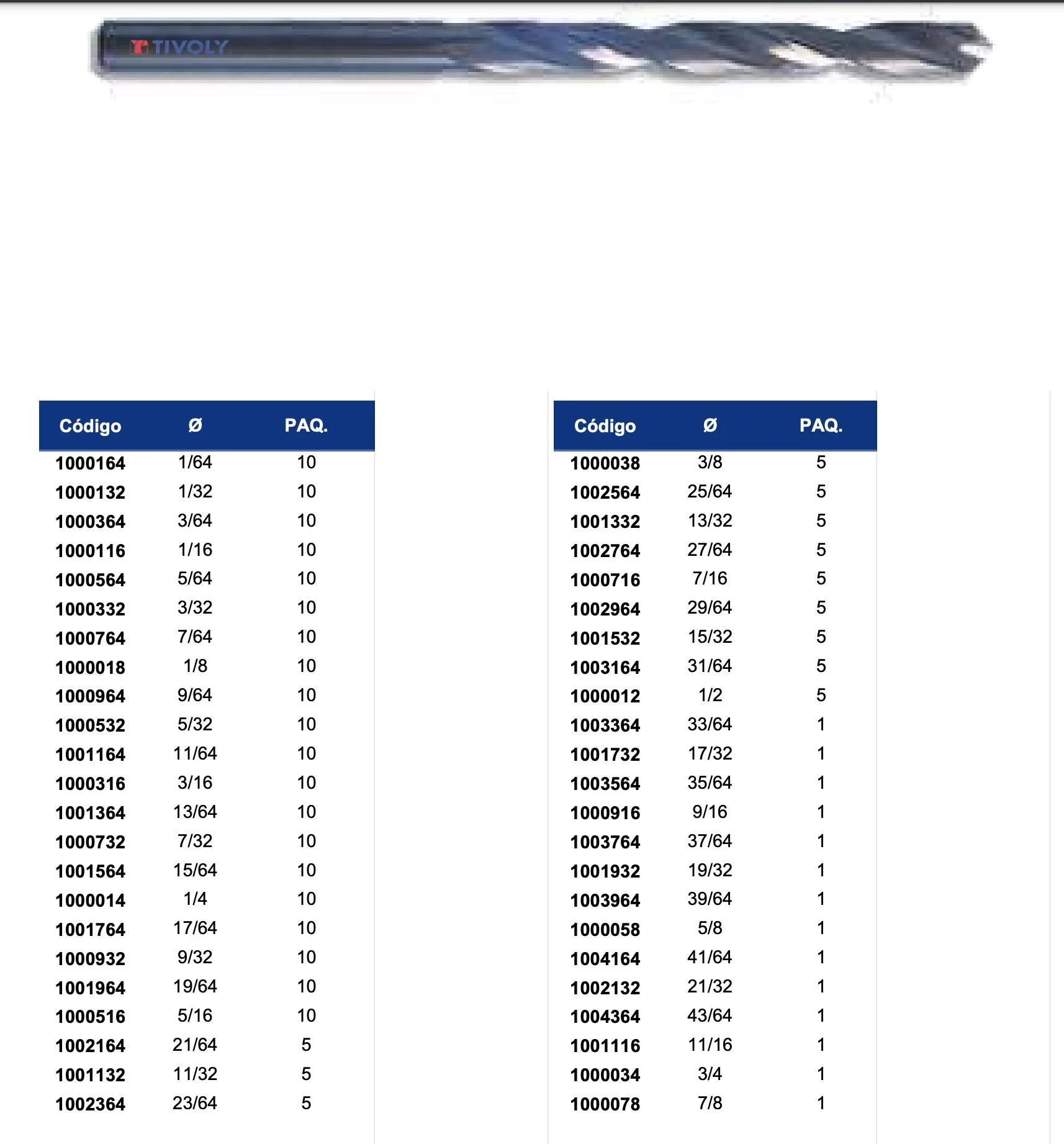 BROCA PARA METAL ALTA VELOCIDAD 1/64 HHS DIN338