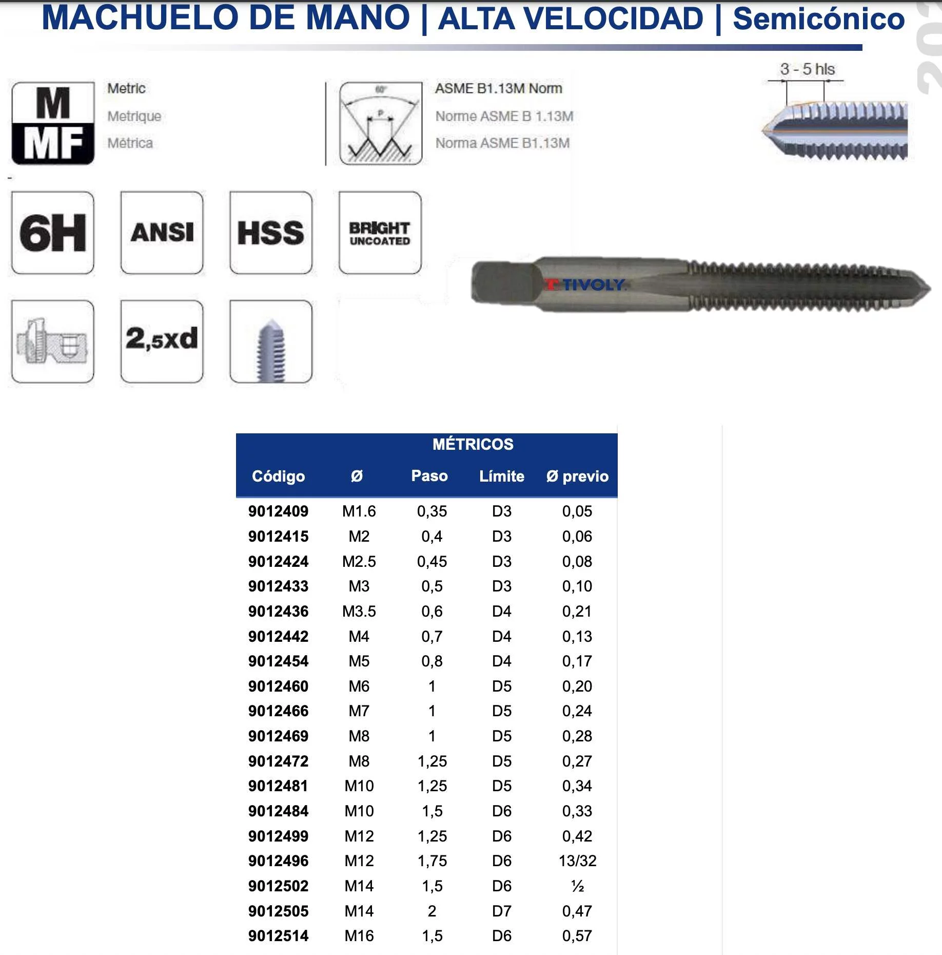 MACHUELO DE 8-1.25 MM A.V. ANSI SEMICONIO D5 MF
