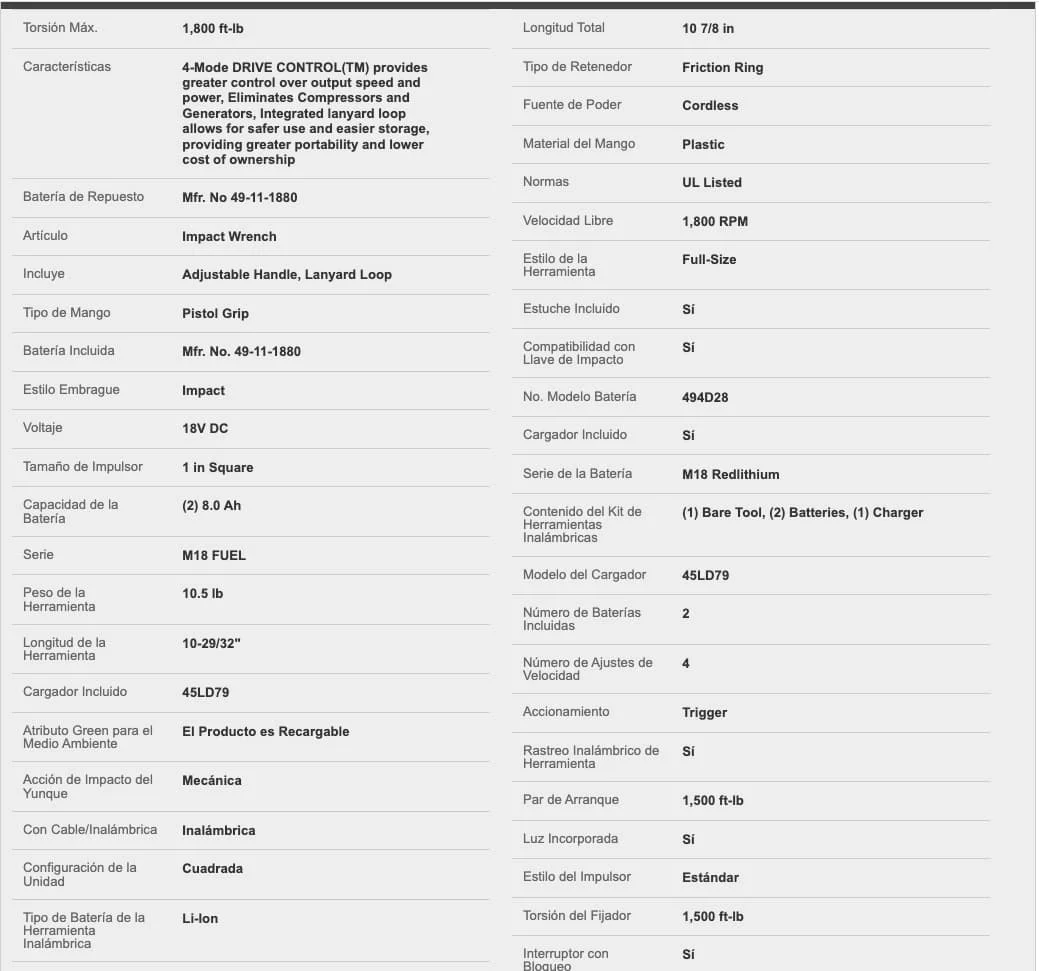 Compatibilidad con Llave de Impacto |