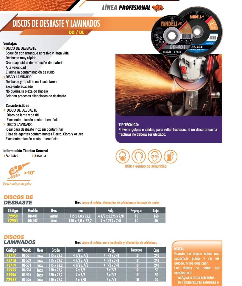 Usos: Acero al carbón, acero inoxidable y eliminación de soldaduras.