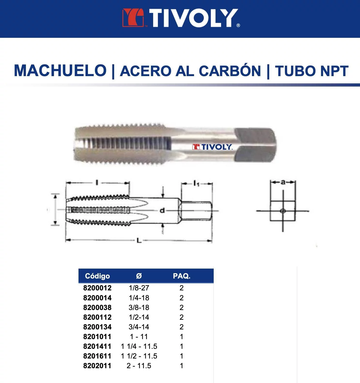 Machuelo acero al carbon para tubo 3/4-14NPT