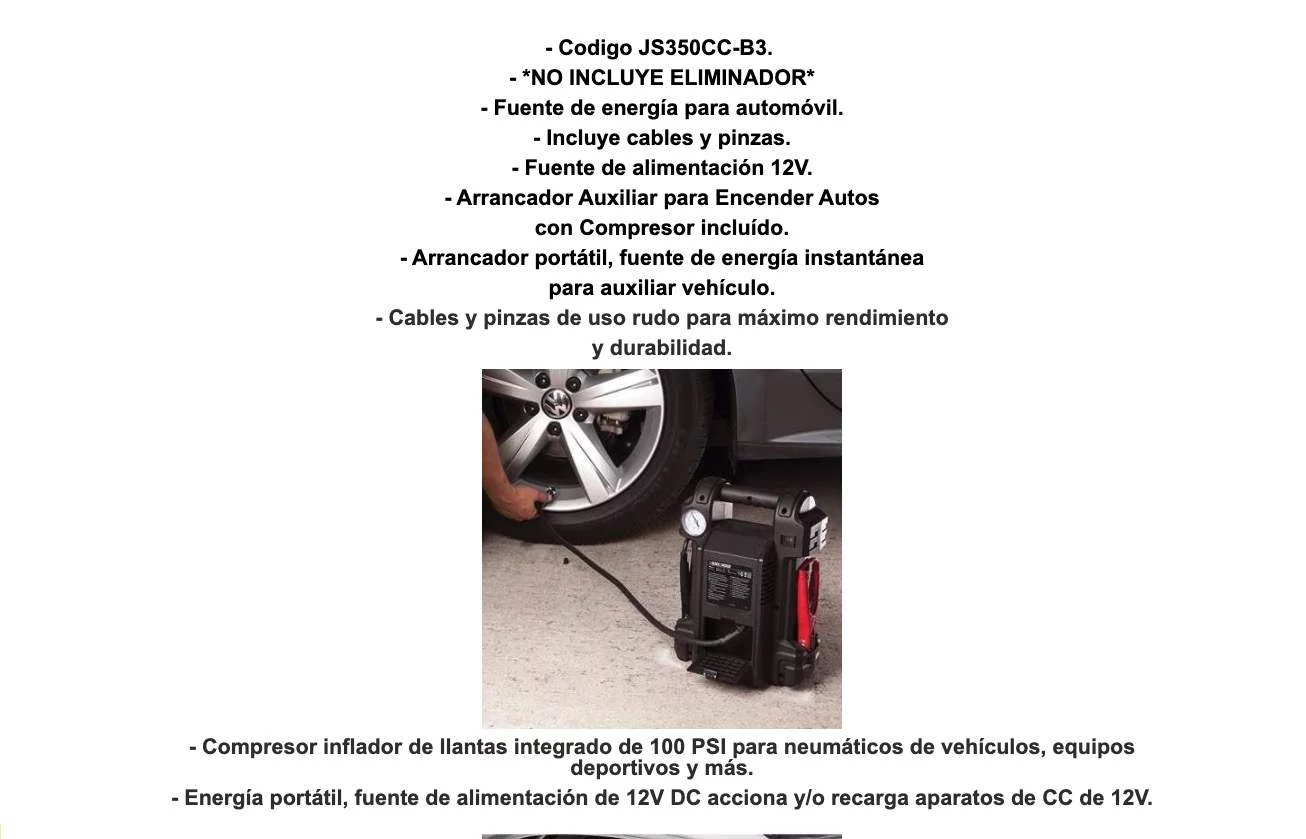 -Arrancador Auxiliar para Encender Autos con Compresor incluido.