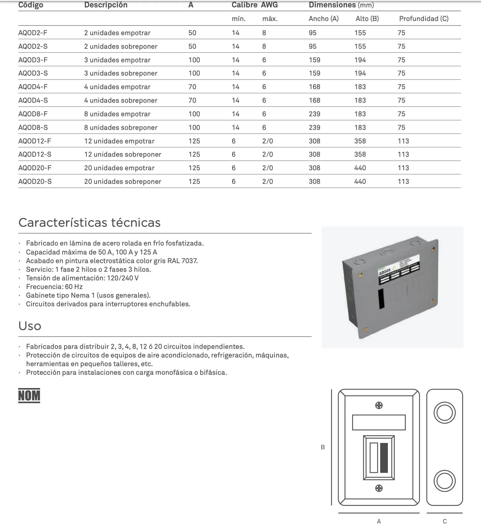 • Gabinete tipo Nema 1 (usos generales).