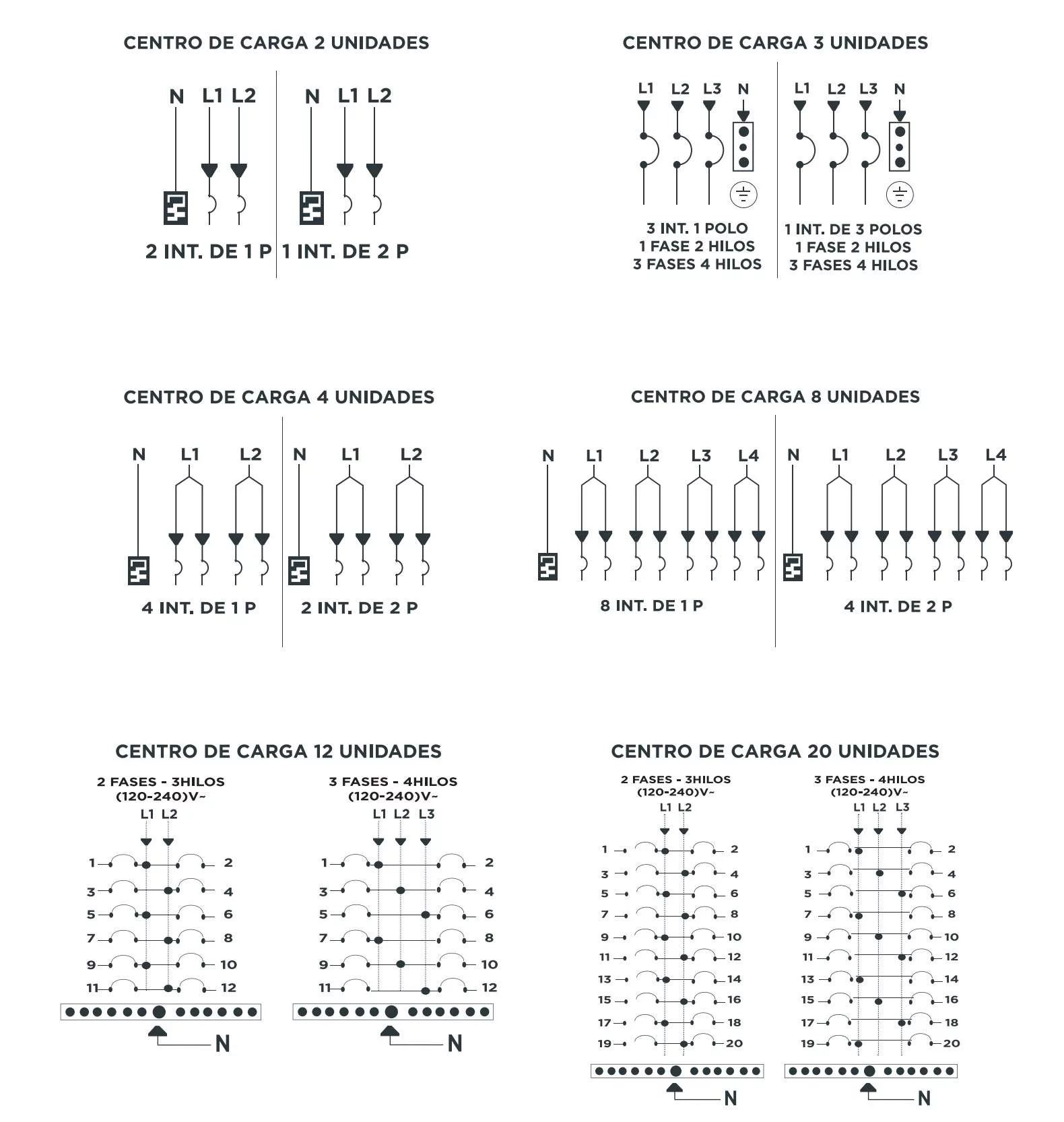 ■ Fabricados para distribuir 2, 3,4, 8,12 ó 20 circuitos independientes.