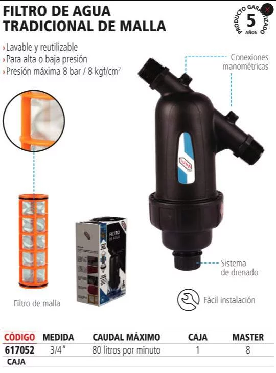 FILTRO EN LINEA AGUA 3/4 MALLA 120MICRON