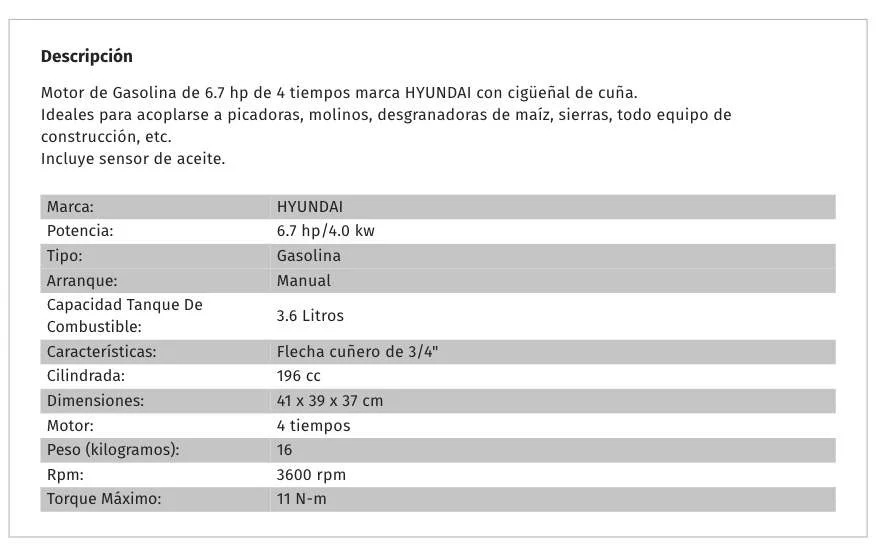 MOTOR A GASOLINA HYUNDAI 7HP 11Nm SENSOR ACEITE