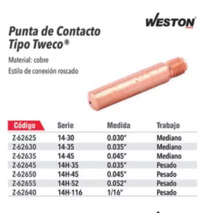 1PZ PUNTA CONTACTO TWECO .035 .9MM ANTORCHA MIG