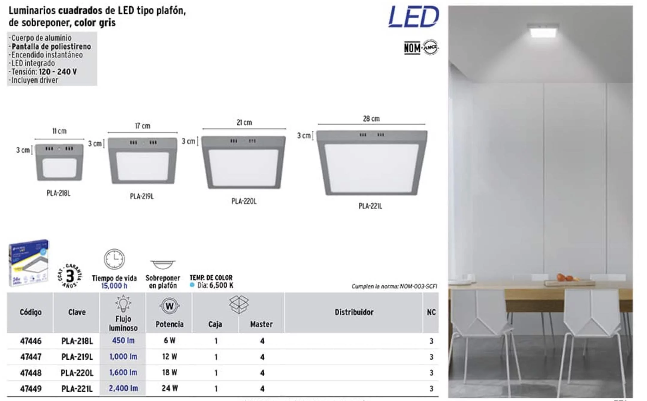 PLAFON CUADRADO MODERNO 24W 6500K LED GRIS
