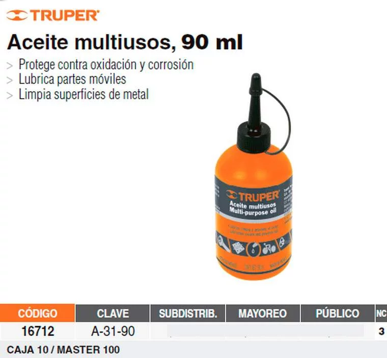 ACEITE MULTIUSOS 90 ML. 3 EN 1 TRUPER
