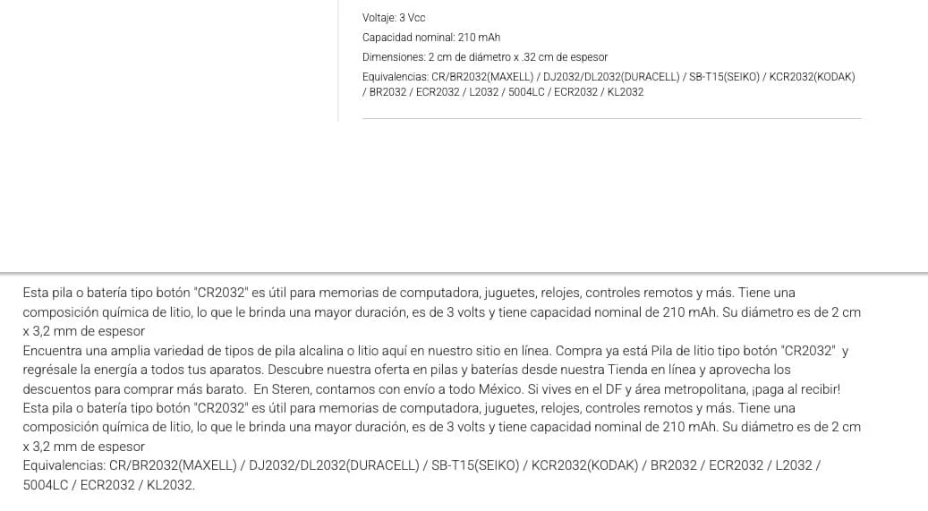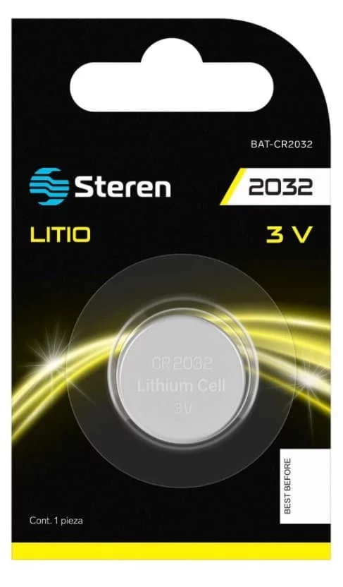 PILA DE LITIO TIPO BOTON CR2032 3V STEREN RECARGABLE