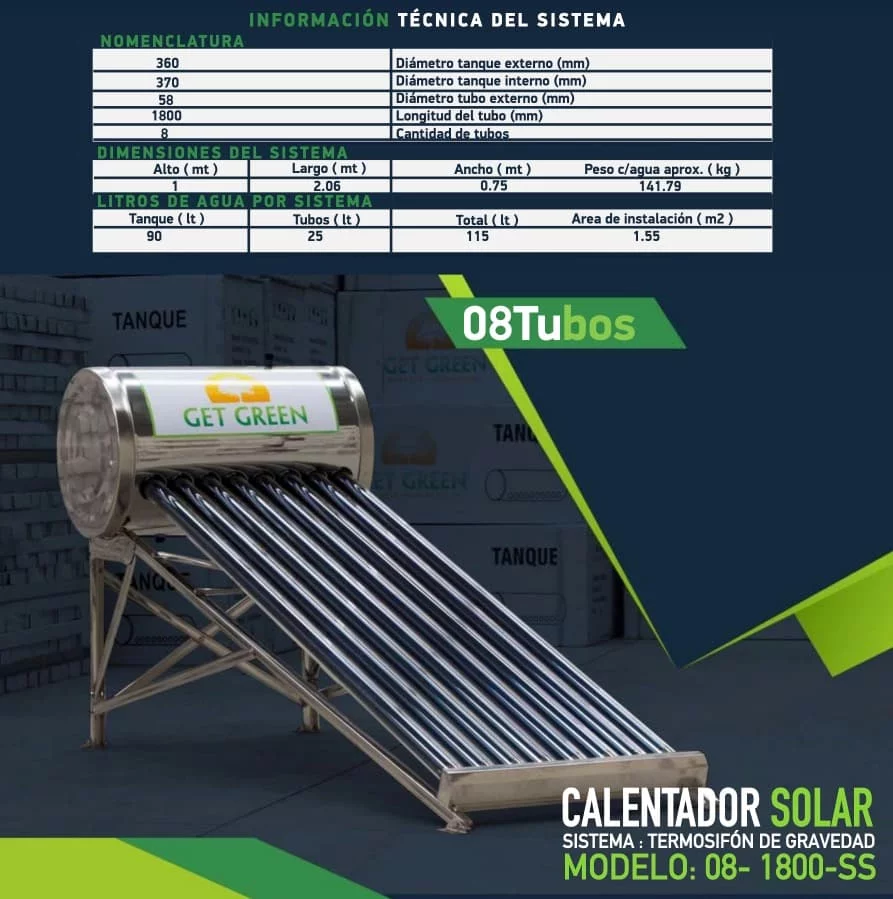 CALENTADOR SOLAR INOX 8 TUBOS 96L 2 PERSON FONTER