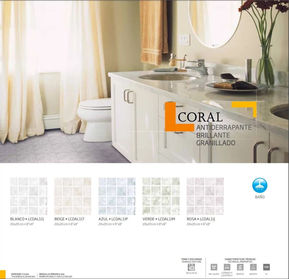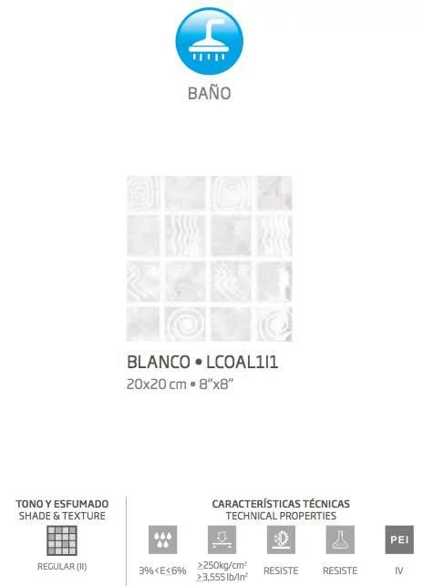 CJ. 20X20 CORAL BLANCO 1A 35PZ 1.50M