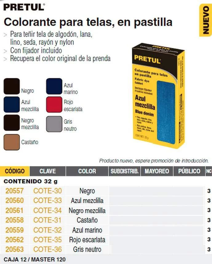COLORANTE TELA PASTILLA 32G NEGRO MEZCLILLA COTE-3