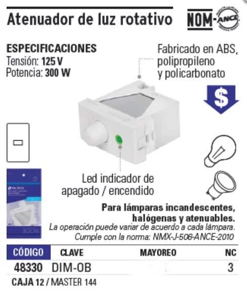 DIMMER GIRATORIO BLANCO OSLO 300W DIM-OB VOLTECH