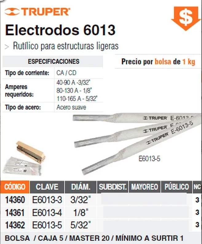 14361 E6013-4 1/8" 14362 E6013-5 5/32’