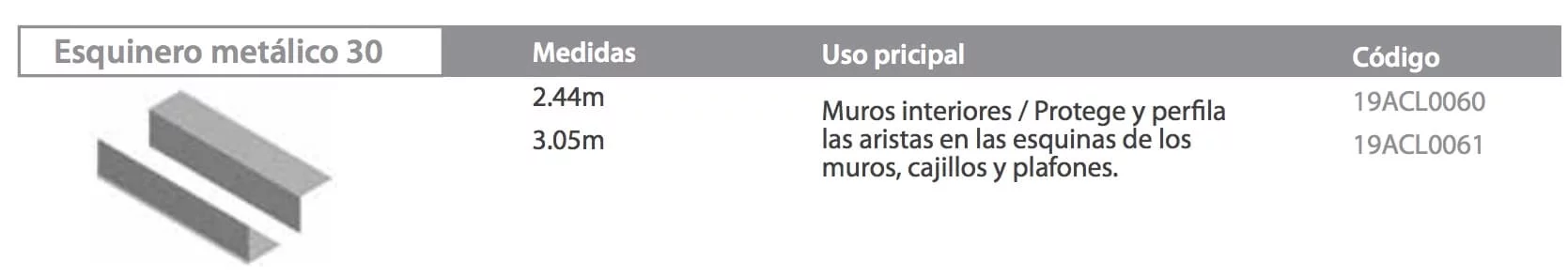 ESQUINERO METALICO 26 (3.05) PLACA COMEX