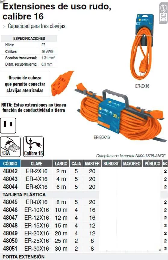Extensiones de uso rudo, calibre 16