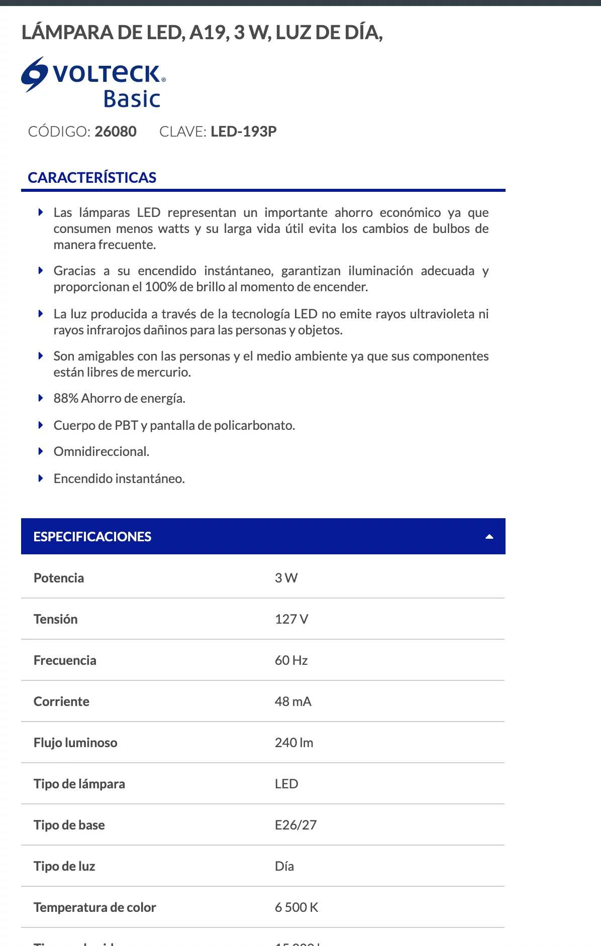 LÁMPARA DE LED, A19,3 W, LUZ DE DÍA, ^VOLTeCK.