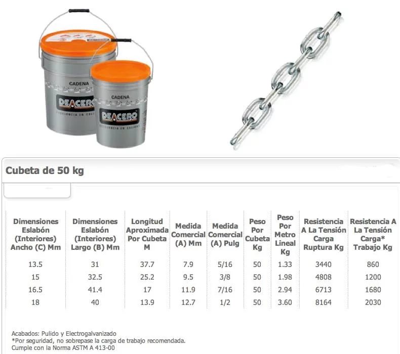 MT. CADENA DE 3/16 PULIDA 126.4MTS 50 KILOS