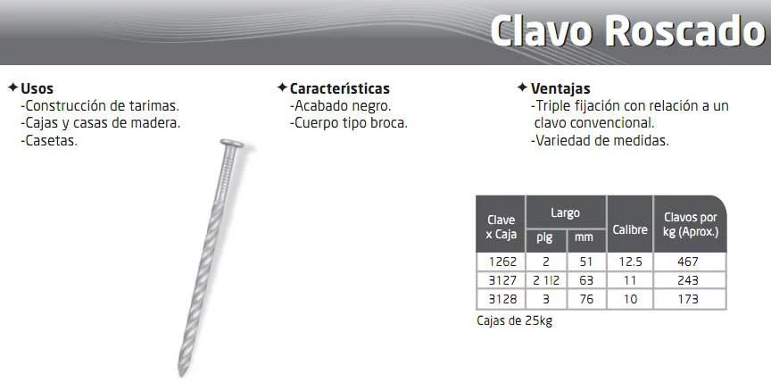 Clavos por kg (Aprox.) |
