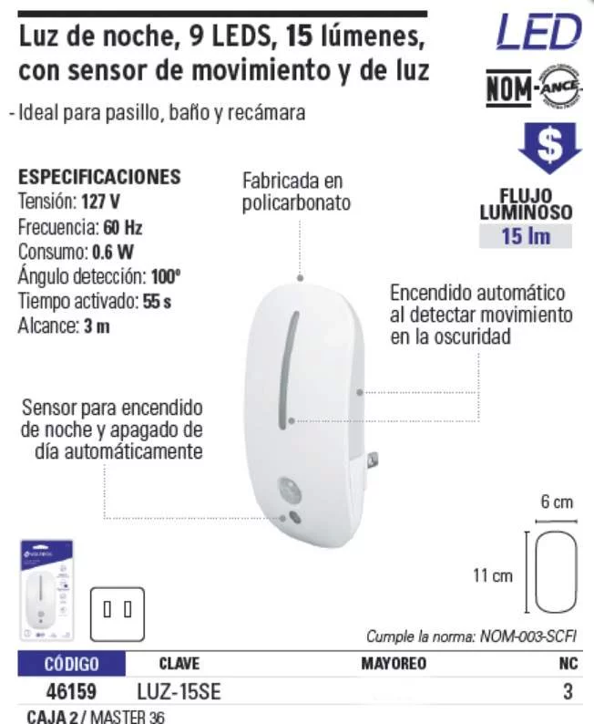 LAMPARA LUZ DE NOCHE LED CON SENSOR DE MOVIMIENTO