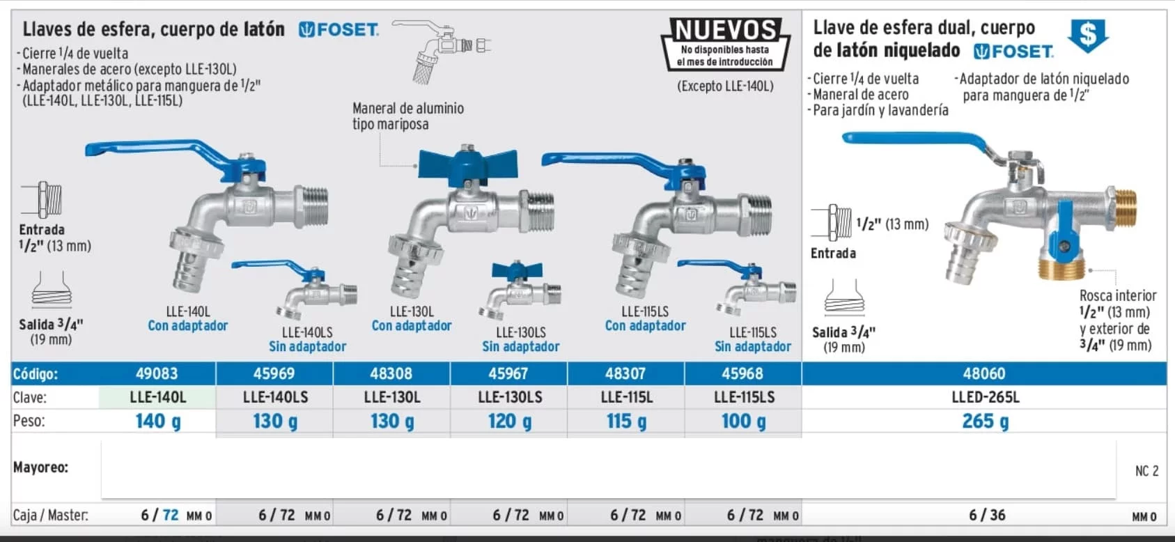 - Manerales de acero (excepto LLE-13OL) -Adaptador metálico para manguera de Va" (LLE-140L, LLE-13OL, LLE-115L)
