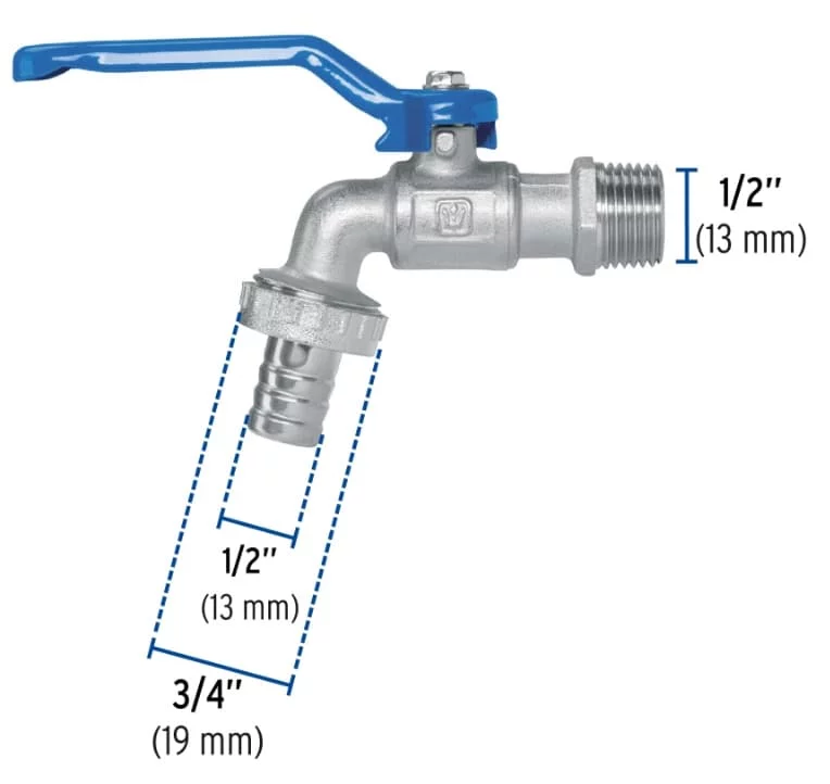 Rosca interior 1/2" (13 mm) y exterior de 3/4" (19 mm)