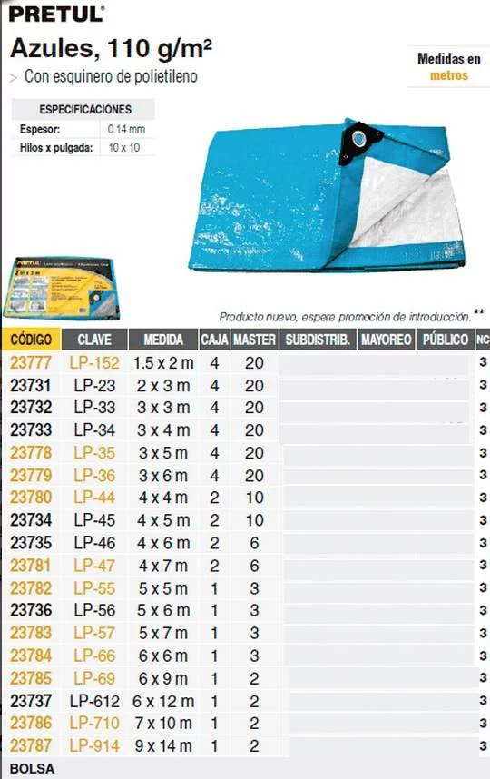 LONA AZUL 9X14 MTS PRETUL LP-914 PRETUL