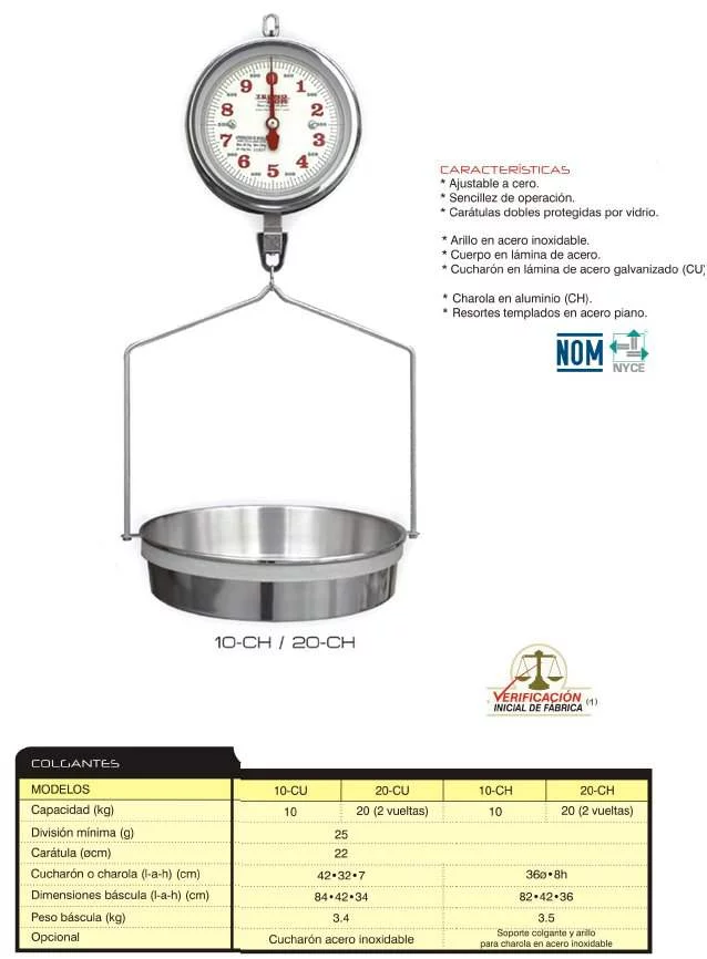 BASCULA COR 20 KG.COLGANTE CHAROLA 20CH TECNOCOR