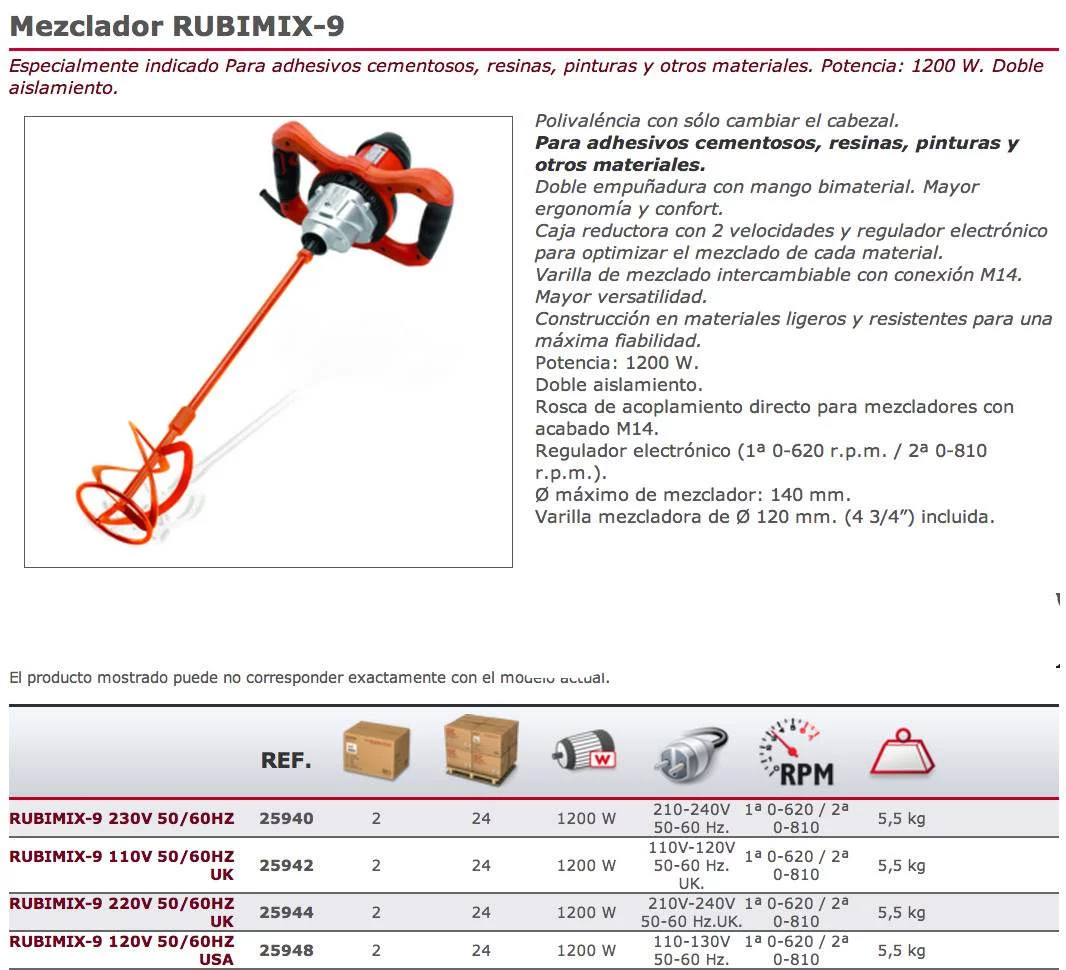 MEZCLADOR PEGAZULEJO RUBIMIX-9 N 120V 1200W