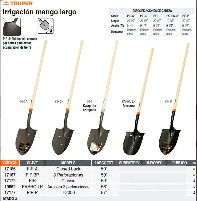 17172 PIR Classic 59" 19662 PARRO-LP Arrocera 3 perforaciones 56“ 17177 PIR-P T-2000 57" |