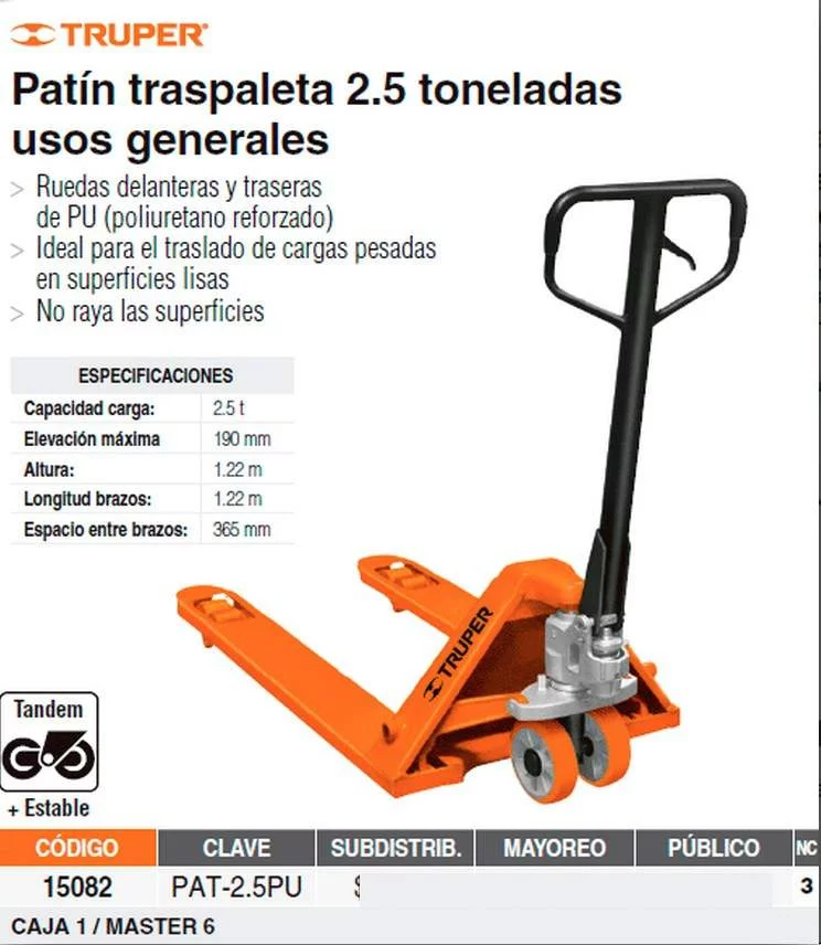 Patín traspaleta 2.5 toneladas usos generales
