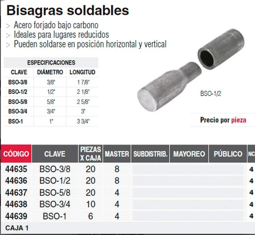 BISAGRA SOLDABLE 3/8 X 1 7/8 BSO-3/8 HERMEX