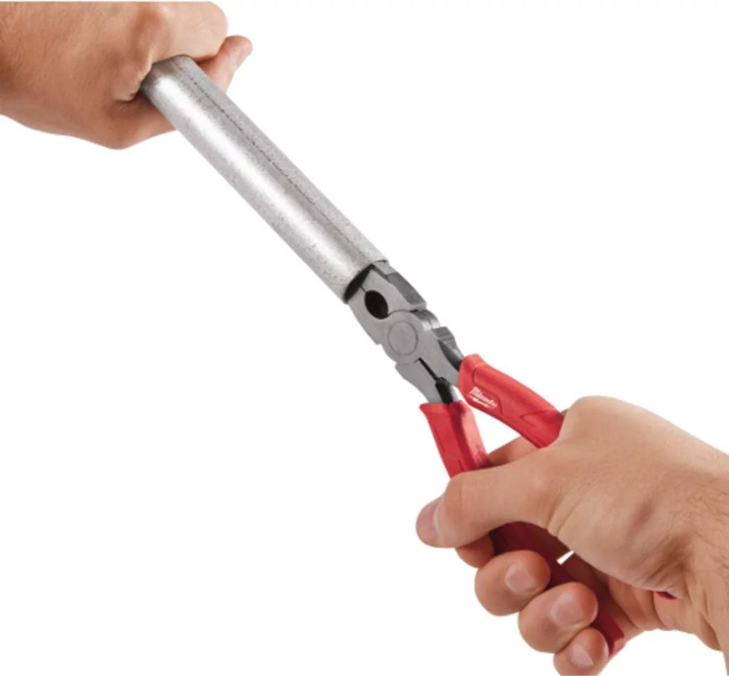 Los Milwaukee® 8 "Tenazas de pico largo 2 cuentan con una" nariz de agarre para tirar del alambre y el material en bruto a través de espacios reducidos en los agujeros y otros, la cabeza de los alicates 'cuenta con rebordes integrados de ensanche (patente pendiente) para la eliminación de las rebabas de la parte interior del tubo liso, así como un cable integrado