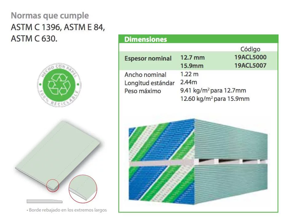 PANEL DE YESO(12.7X1.22X2.44)HUMEDAD FUEGO GUARD
