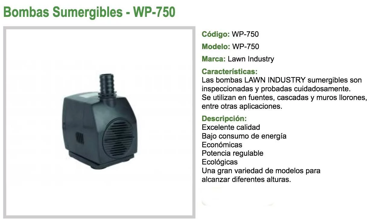 Las bombas LAWN INDUSTRY sumergibles son inspeccionadas y probadas cuidadosamente.
