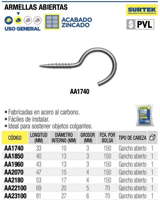 Armella abierta 47mm x 15mm 150pz Surtek