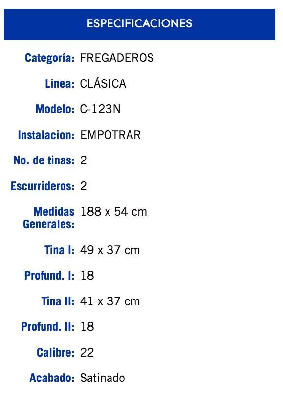 TARJA CLASICA 188X54CM. 2 TINAS 2 ESCURRIDEROS