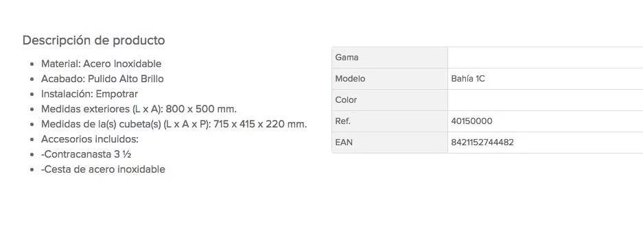 Descripción de producto