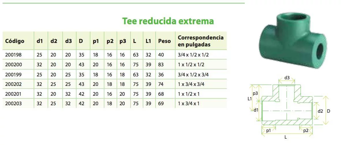 TEE REDUCIDA EXTREMA 3/4X1/2X3/4