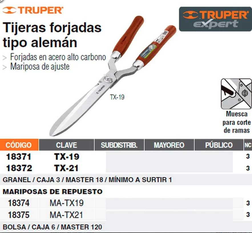 TIJERA PODA 2 MANOS 12 .FORJADA TIPO ALEMAN TX-21
