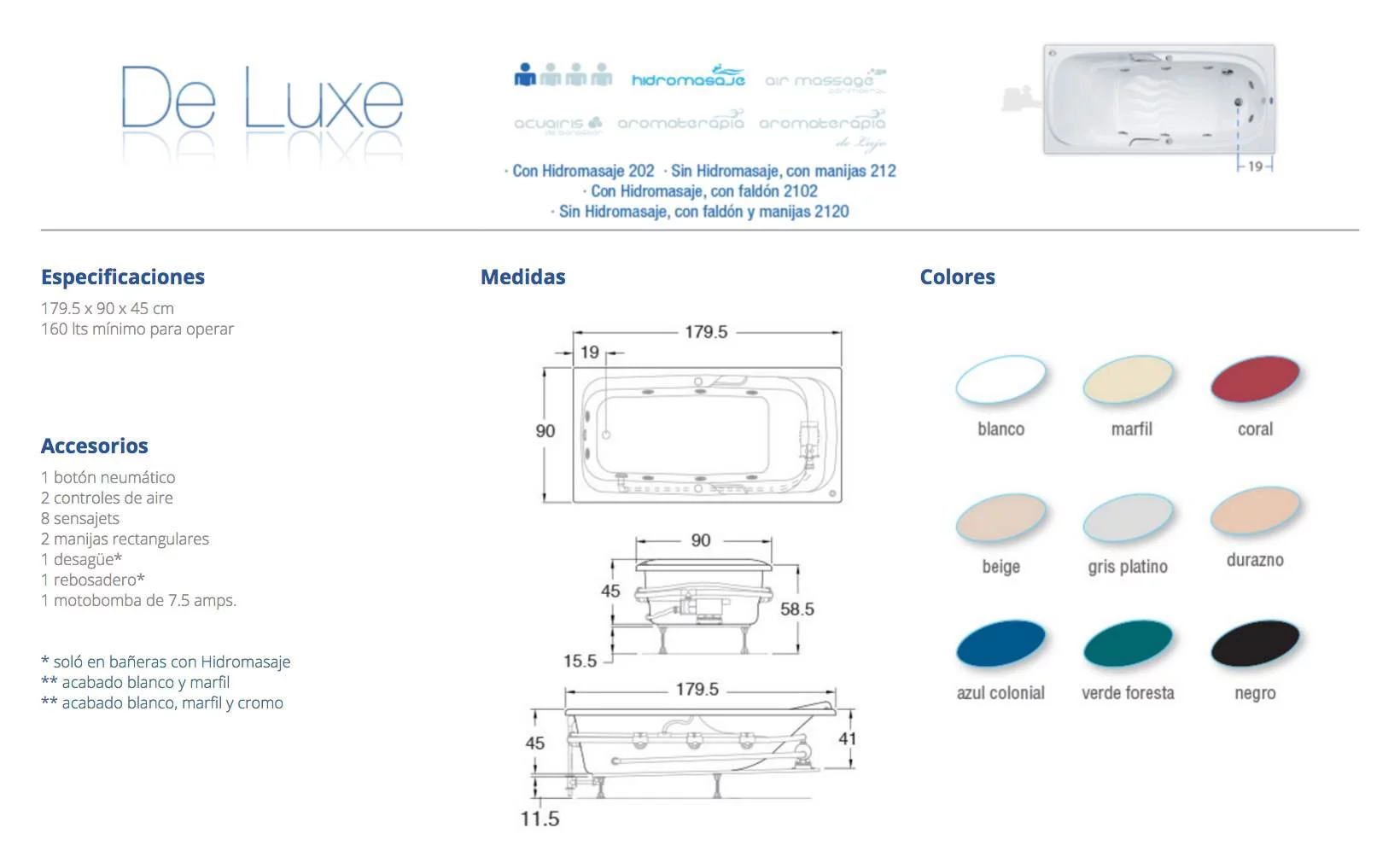 TINA DE LUXE AZUL SIN HIDRO SIN MANIJAS