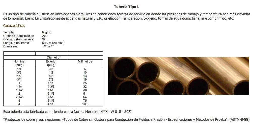 TUBO DE COBRE IUSA 1 TIPO L PARA GAS (6.10 M)