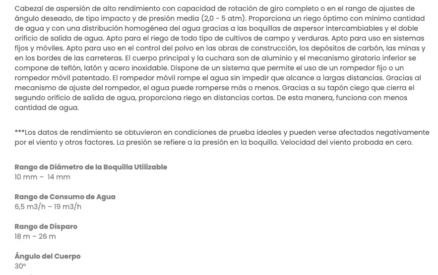 4patas 1m altura entrada 2" npt, presion max 70psi 5bar, INCLUYE BOQUILLAS