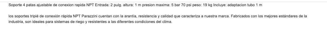 TRIPIE 4PATAS 1M 2" CA¥ON PARA RIEGO 1-1/2" 28M 309LPM