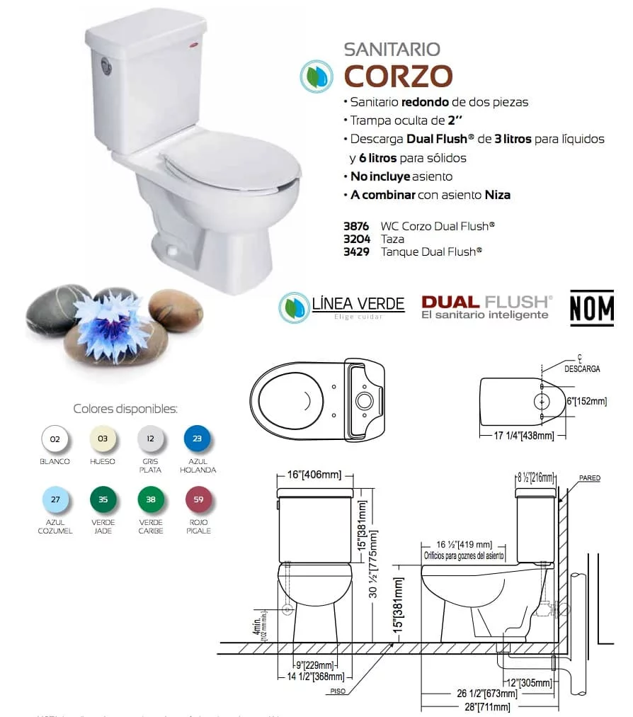 WC. CORZO DUAL 35 VERDE JADE LAVABO JULI PEDES COR