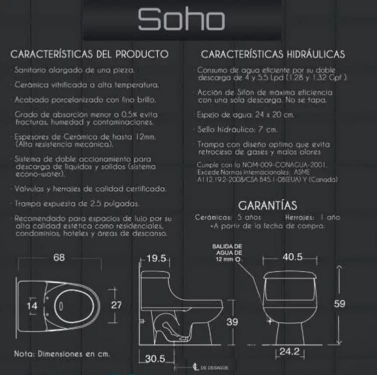 WC. ONE PIECE ALARGADO BLANCO GENOVA B001