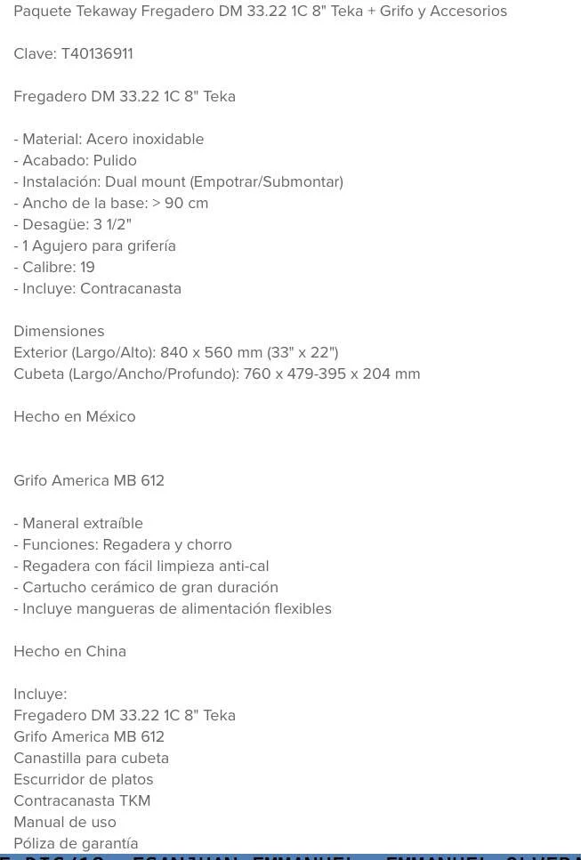 Paquete Tekaway Fregadero DM 33.22 1C 8" Teka + Grifo y Accesorios
