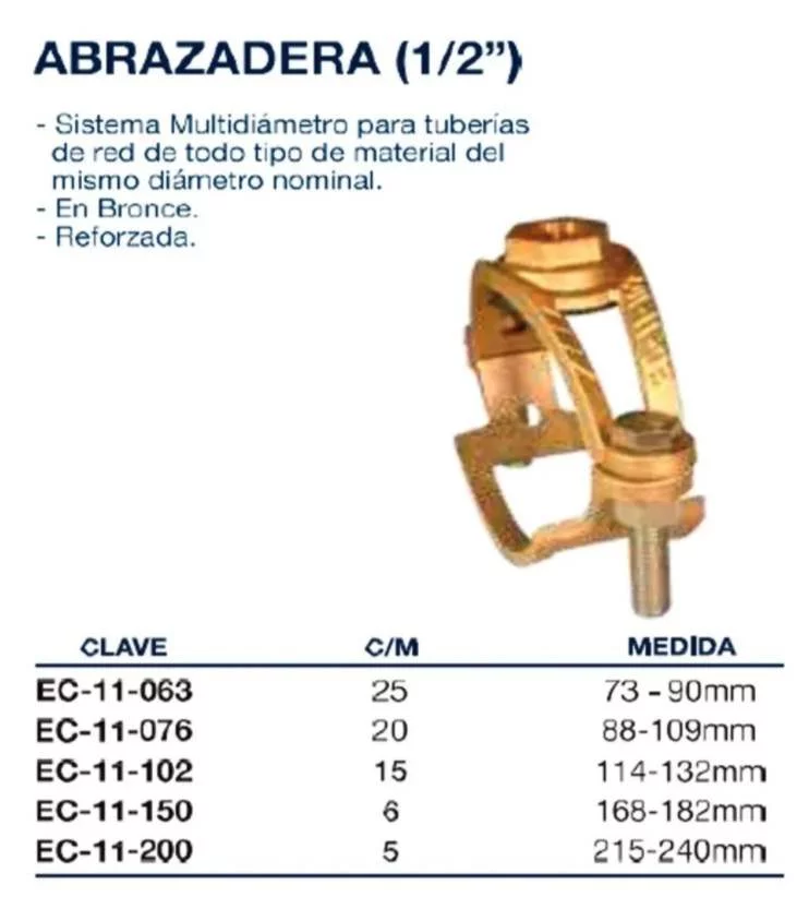 ABRAZADERA DE BRONCE 2 1/2 X 1/2 ALFA