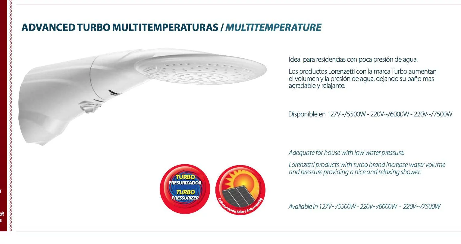 Los productos Lorenzetti con la marcaTurbo aumentan el volumen y la presión de agua, dejando su baño mas agradable y relajante.